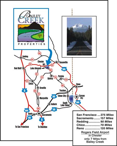 area, 2 hours to Reno, 1 1/4 hours to Chico; predictable travel times